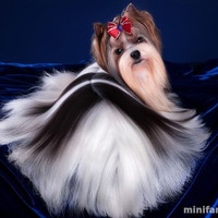 Бивер йорк фото взрослой собаки. Длинная ниспадающая шерсть на прямой пробор. Окрас черно-бело-золой. Черная и белая ...